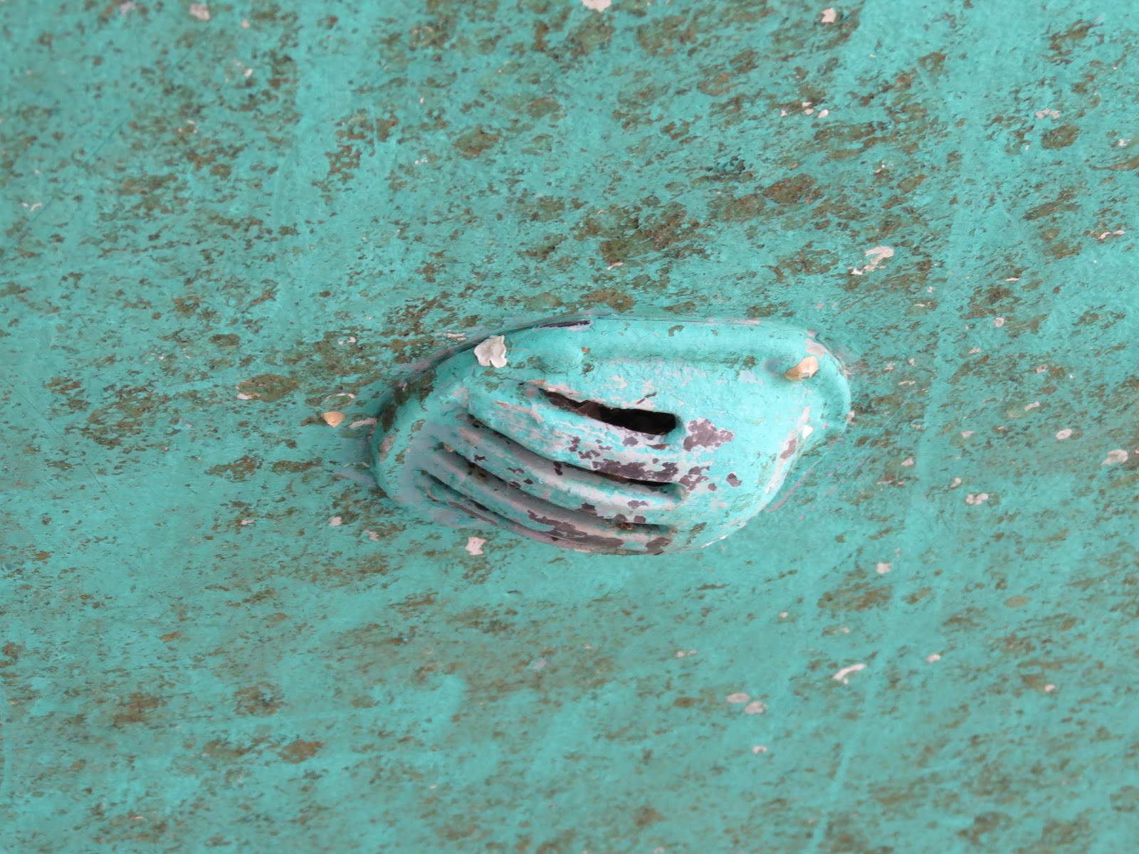 The cutting the through-hull "out" did not involve cutting the hull. I simply used a dremel tool to cut through the external mushroom head in a quandrant pattern. It was then a simple process of prying the pieces of bronze off. The 1976 bronze was soft enough to break with a small amount of prying so as to not damage the hull. The seacocks were easy to remove after that.